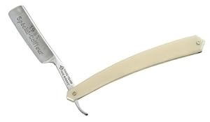 Gönnen Sie sich eine Nassrasur mit einem stilvollen Rasiermesser aus dem Hause Thiers-Issard. Das Messer wird unter Verwendung von hochwertigem, englischem Carbonstahl in Frankreich gefertigt. Die nicht-rostfreie, flexible Klinge gewährleistet eine hautschonende und gründliche Rasur. Der Griff ist aus weißem Kunststoff hergestellt. Zum Lieferumfang gehört ein einfaches Etui aus schwarzem Leder. Universell für die Bartrasur einsetzbar.